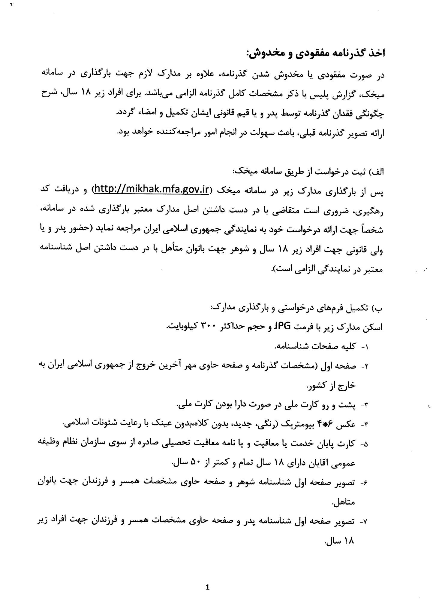 اخذ گذرنامه مفقودی و مخدوش