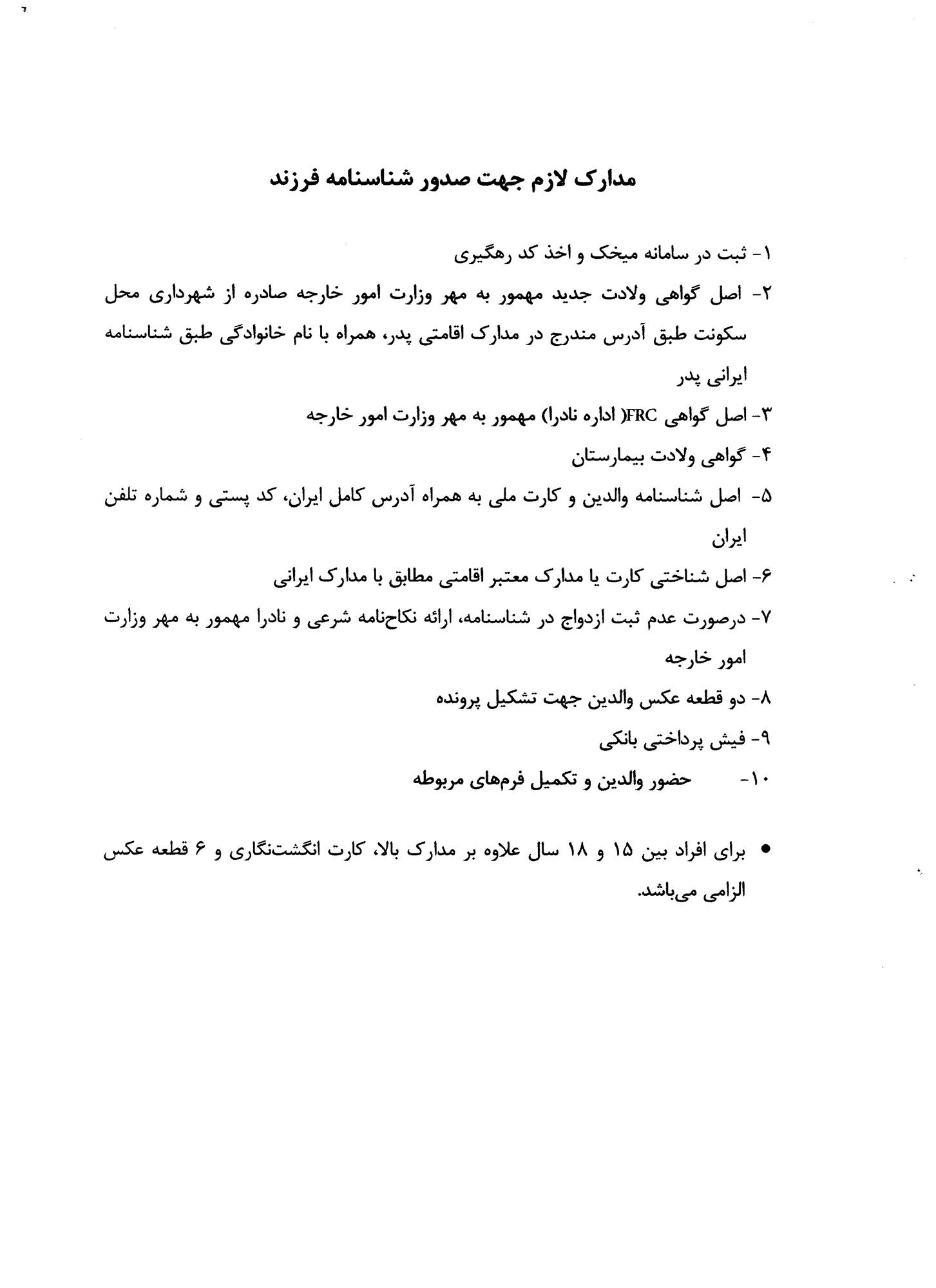 مدارک لازم برای صدور شناسنامه فرزند